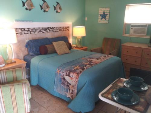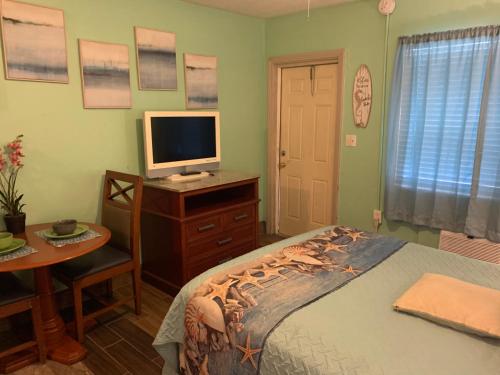 This double room features a stovetop, flat-screen TV and tile/marble floor.